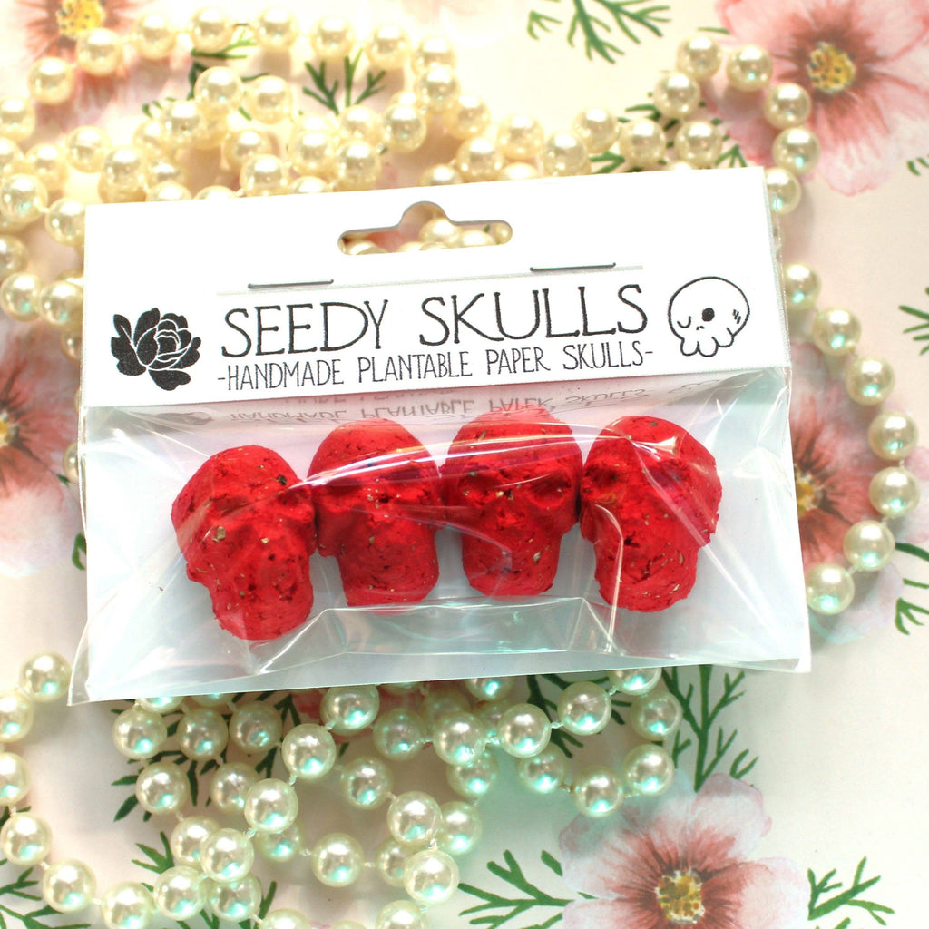4 Pack Red Plantable Paper Skulls / Seed Bombs / Seedy Skulls Pack / Recycled Paper Pulp Craft / Spring Summer Small Gift / Wild Flowers