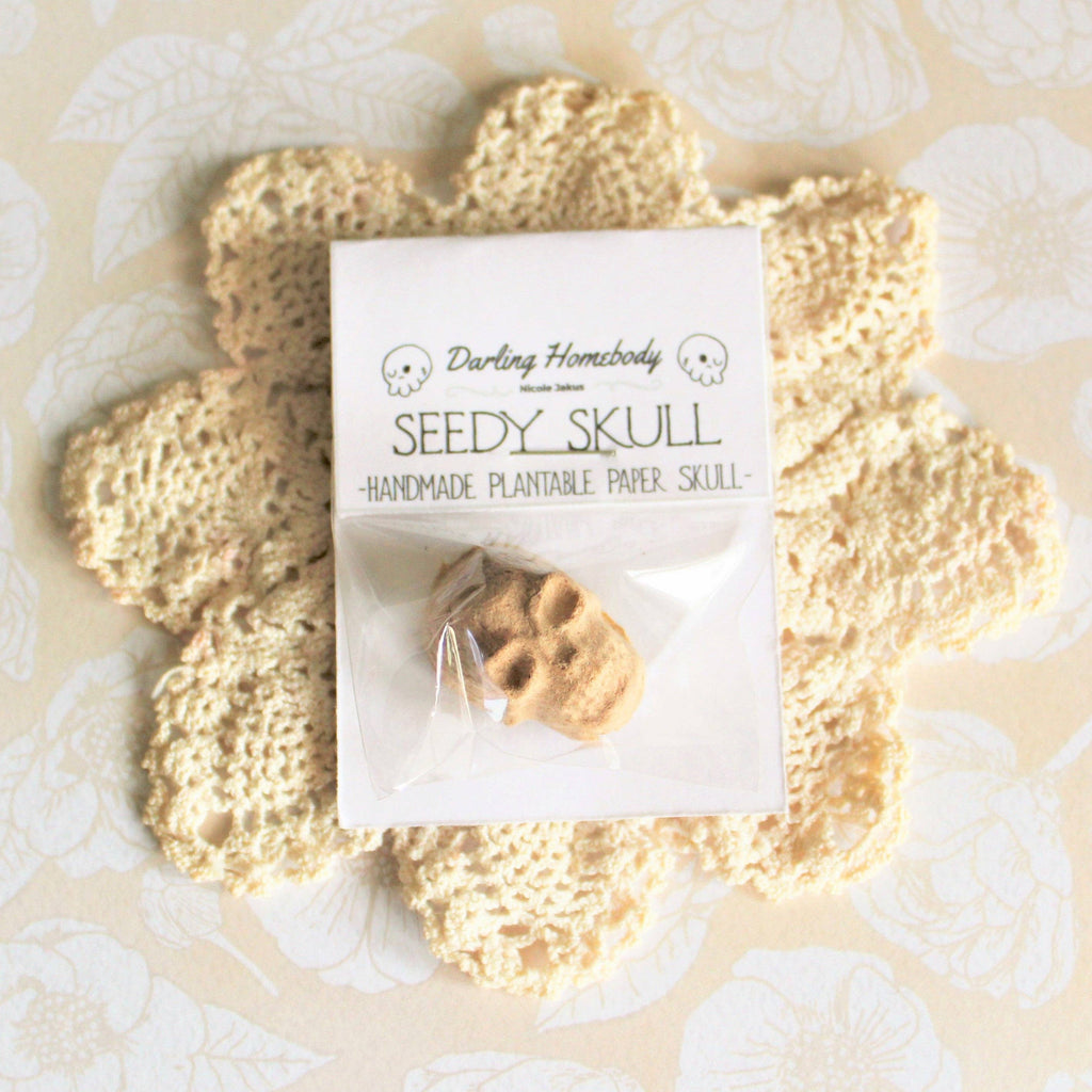 Single Brown Plantable Paper Skull / Seedy Skull Seed Bomb / Recycled Paper Pulp Craft / Spring Summer Small Gift / Wild Flowers