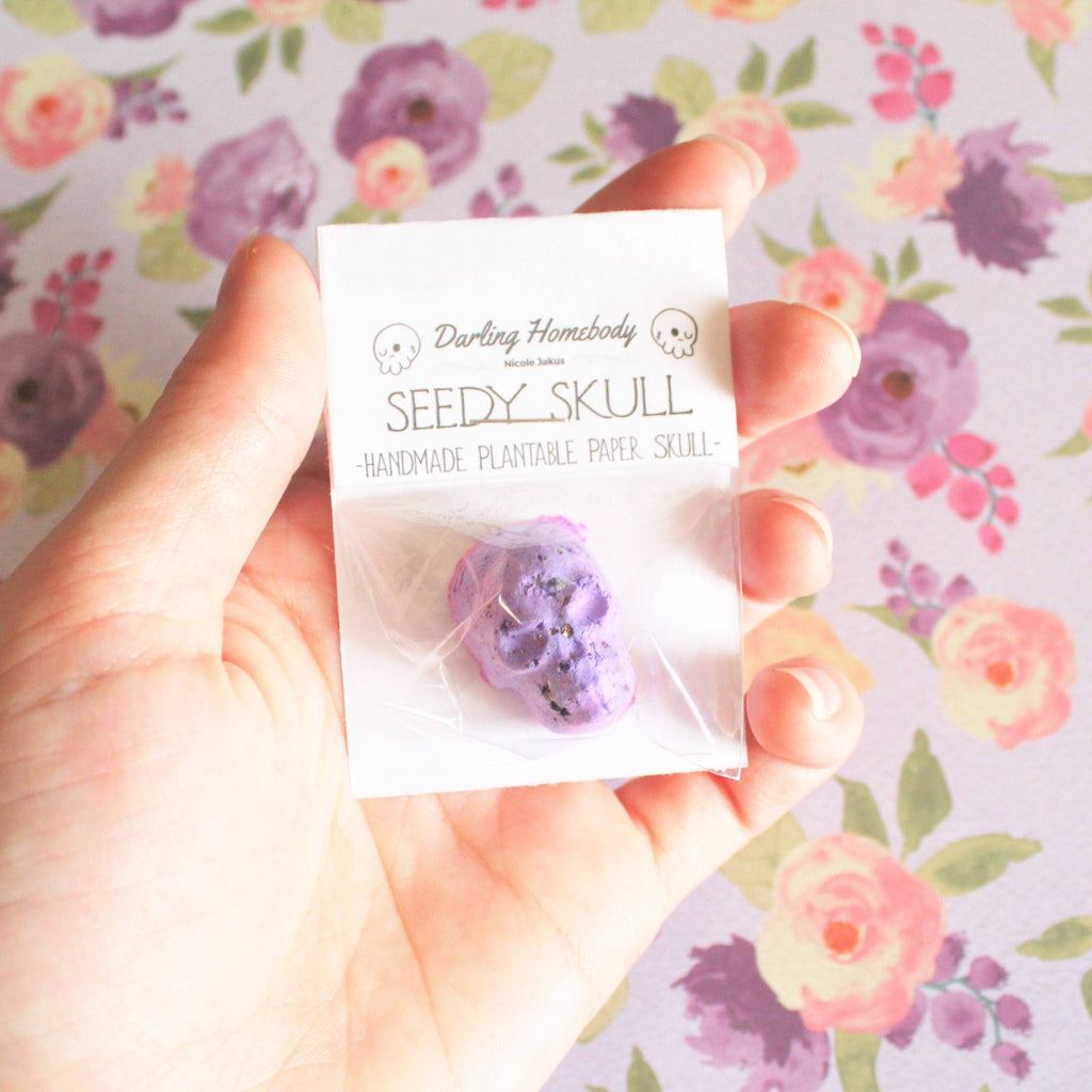 Single Purple Plantable Paper Skull / Seedy Skull Seed Bomb / Recycled Paper Pulp Craft / Spring Summer Small Gift / Wild Flowers